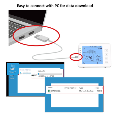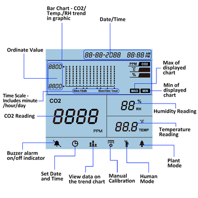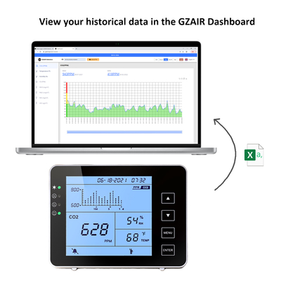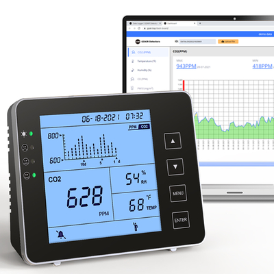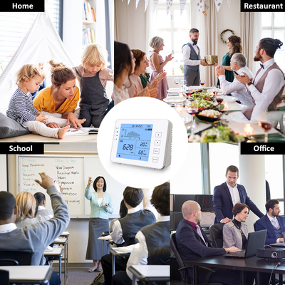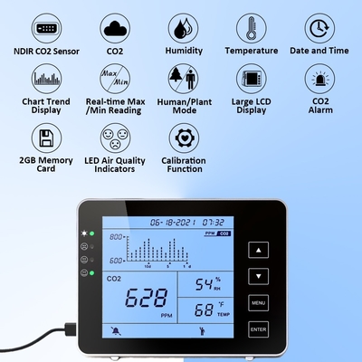مراقبة ثاني أكسيد الكربون شاشة LCD CO2 / درجة الحرارة / الرطوبة سجل البيانات كاشف غاز الهواء الداخلي للمدرسة المنزلية فندق صالة الألعاب الرياضية للمستشعرات السويسرية