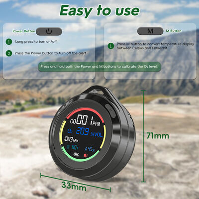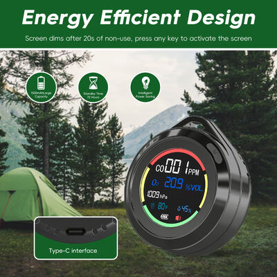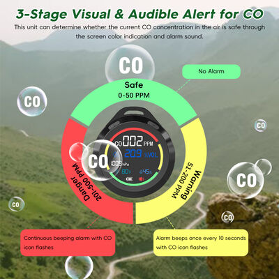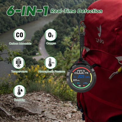 جهاز الكشف عن أول أكسيد الكربون يكتشف الضغط الجوي، الارتفاع، درجة الحرارة، الرطوبة في الوقت الحقيقييمكن وضعه في جيب بسهولةأيضاً، لديه سلك 7.8 بوصة، يمكنه أن يعلق ويقف.