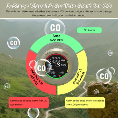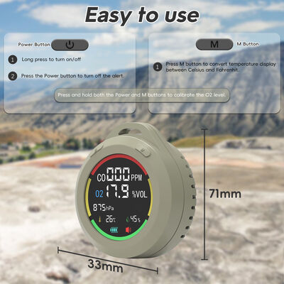 [تصميم 6 في 1 ومحمول] يكتشف كاشف أول أكسيد الكربون للمركبات الترفيهية أول أكسيد الكربون، و O2، والضغط الجوي، والارتفاع، ودرجة الحرارة، والرطوبة في الوقت الفعلي. بحجم صغير 2.8 * 1.3 بوصة، يمكن وضعه في الجيب بسهولة. أيضًا، يحتوي على حبل بطول 7.8 بوصات، ويمكن تعليقه والوقوف.