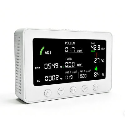 ثاني أكسيد الكربون، ثاني أكسيد الكربون، حبوب اللقاح، PM1.0، PM2.5، TVOC، الرطوبة،AQI، الضوضاء